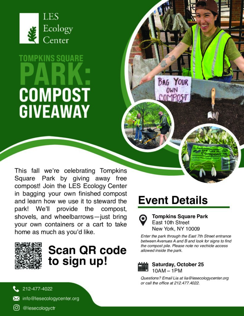 Make your gardens happy with FREE compost from LES Ecology Center! Bring your own containers or a cart to take home as much as you’d like! Shovels and wheelbarrows will be provided. Tompkins Square Park, 10am-1pm Sat Oct 25 Register on eventbrite! […]